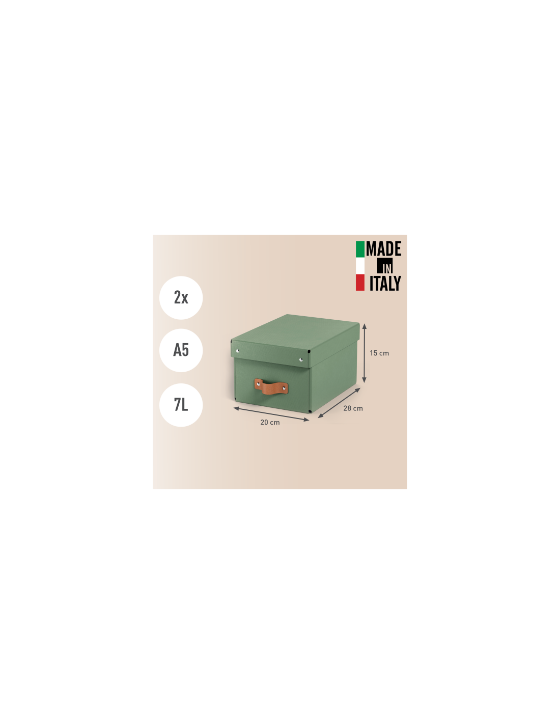 Leitz 61470050. Material: Cartón, Color del producto: Verde, Formato: A5. Volumen: 7 L, Ancho: 200 mm, Altura: 150 mm. Cantidad por paquete: 2 pieza(s). País de origen: Italia. Certificados de sostenibilidad: Forest Stewardship Council (FSC)
