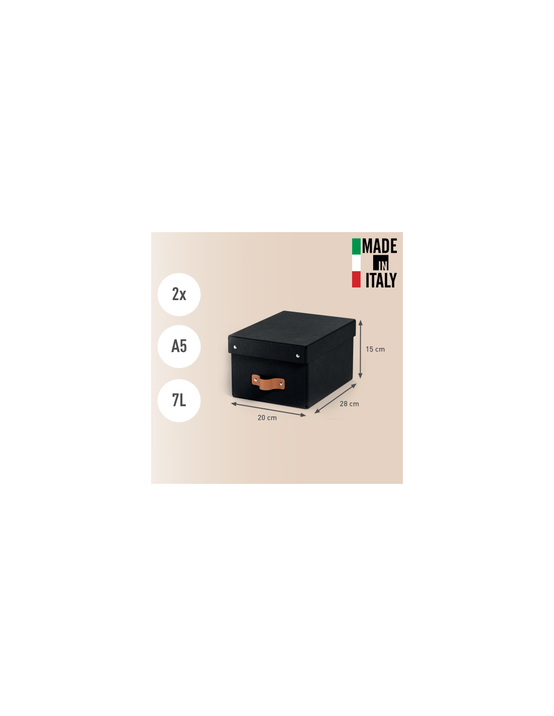 Leitz 61470095. Material: Cartón, Color del producto: Negro, Formato: A5. Volumen: 7 L, Ancho: 200 mm, Altura: 150 mm. Cantidad por paquete: 2 pieza(s). País de origen: Italia. Certificados de sostenibilidad: Forest Stewardship Council (FSC)