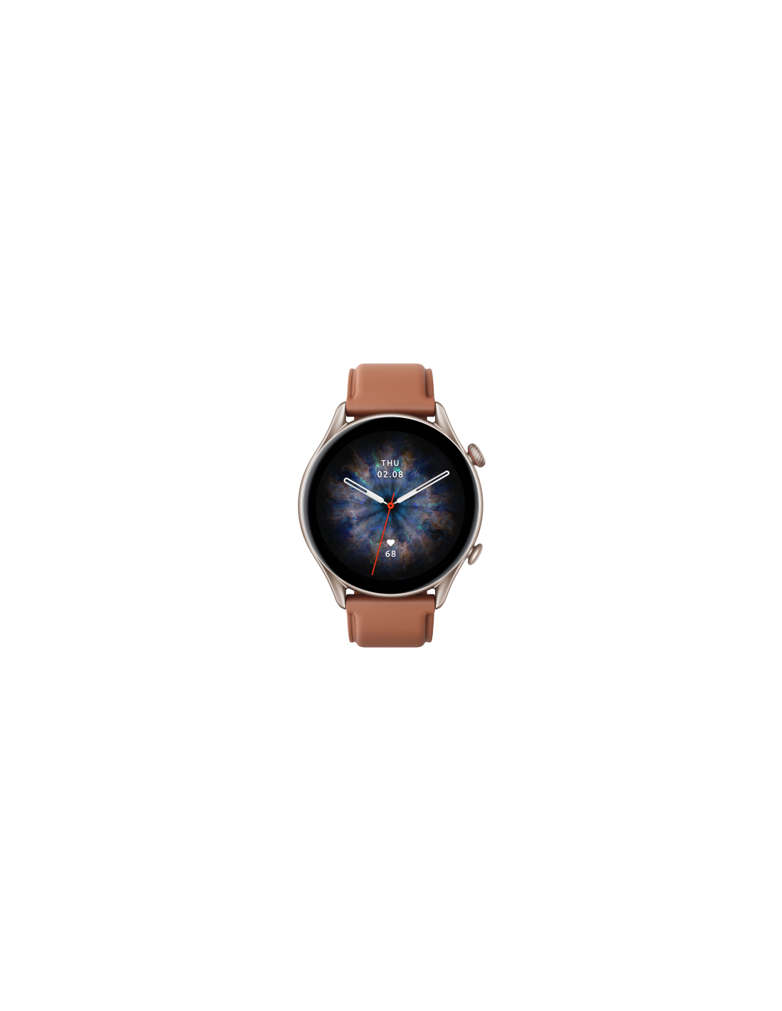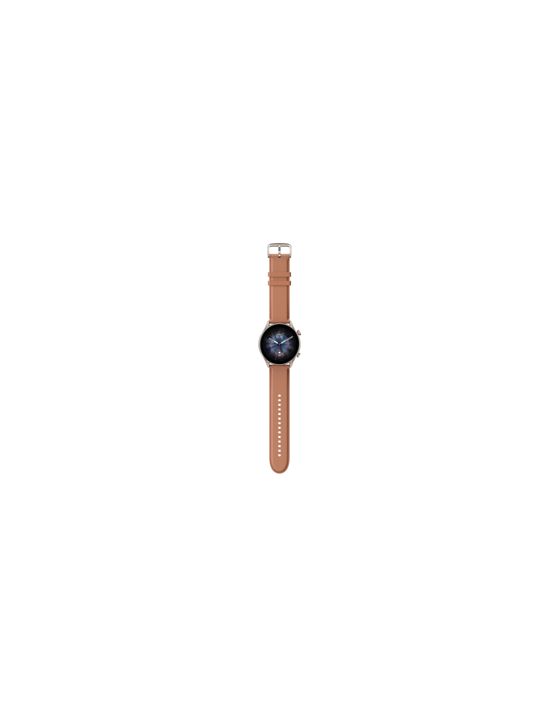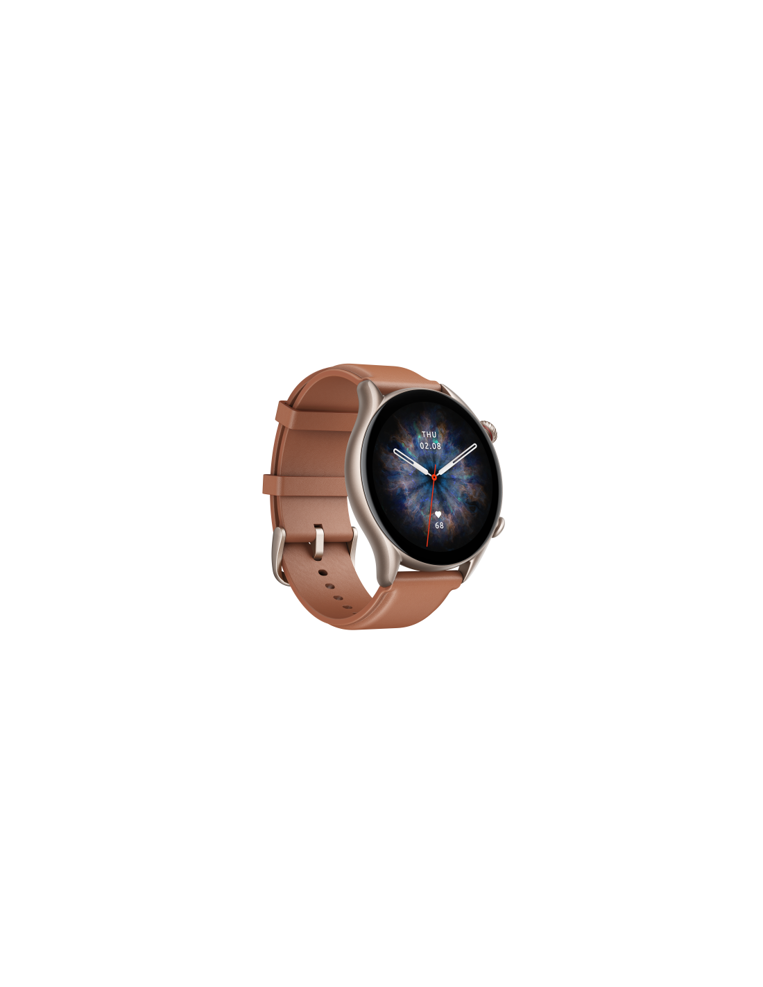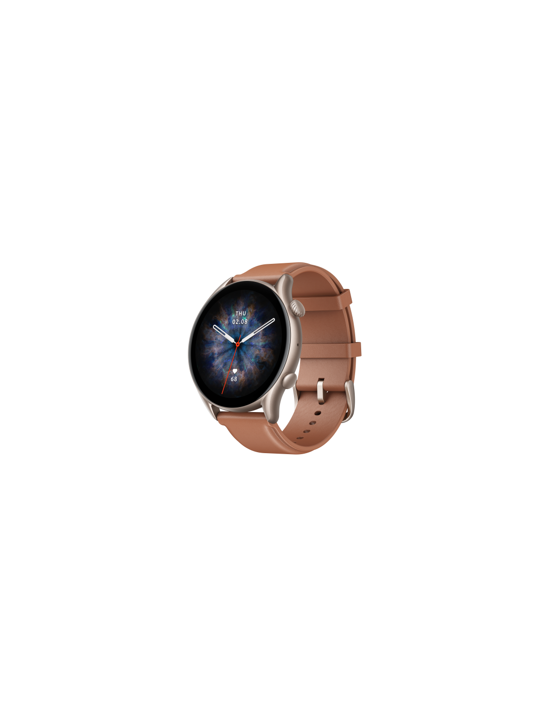 Amazfit GTR 3 Pro. Diagonal de la pantalla: 3,68 cm (1.45"), Tipo de visualizador: AMOLED, Resolución de la pantalla: 480 x 480 Pixeles, Pantalla táctil. Wifi. GPS (satélite). Capacidad de batería: 450 mAh. Peso: 32 g. Material de la banda: Cuero, Color de banda: Marrón