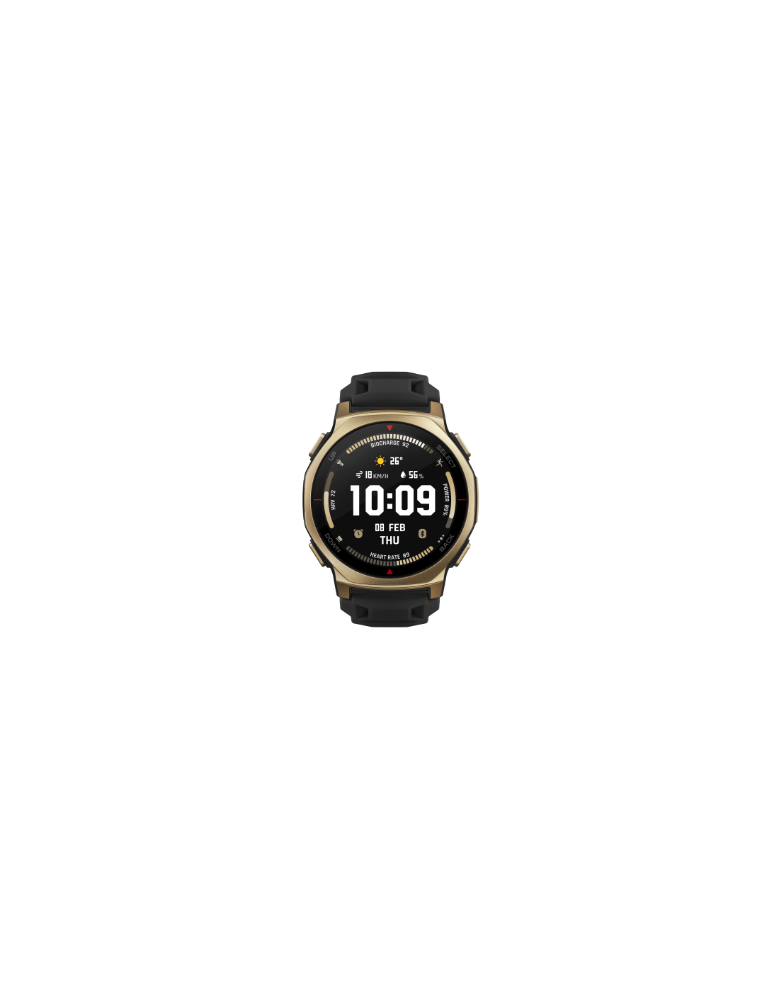 Amazfit T-rex 3 Pro. Diagonal de la pantalla: 3,35 cm (1.32"), Tecnología de visualización: AMOLED, Resolución de la pantalla: 466 x 466 Pixeles, Pantalla táctil. Capacidad de RAM: 64 MB, Memoria flash: 16 GB. Wifi. GPS (satélite). Capacidad de batería: 640 mAh. Peso: 46,8 g. Humedad: resistente al agua hasta: 45 m, Material de la banda: Silicona, Color de banda: Negro