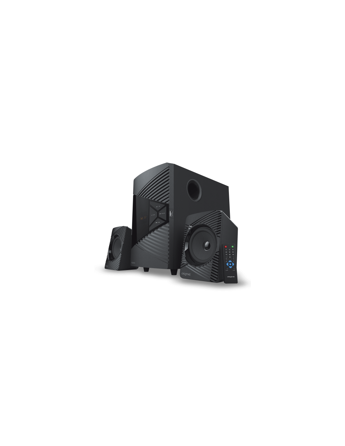 Creative SBS E2500 es un sistema de altavoces de alto rendimiento 2.1 que produce un audio rico y audaz a través de una amplia variedad de opciones de conectividad.Transmita de forma inalámbrica a través de Bluetooth, escuche sus emisoras de radio FM favoritas, o el audio que elija reproduciendo directamente a través de cualquier dispositivo USB. Para conectividad por cable, conéctese a la clavija de entrada auxiliar de 3.5 mm. Además de todo esto, puede acceder fácilmente a los ajustes de reproducción de música y ajustes de audio, directamente en los altavoces, o acceder a las presintonías de EQ con el mando a distancia por infrarrojos.Creative SBS E2500 es la opción perfecta para todas sus necesidades de entretenimiento de audio.Sistema de altavoces 2.1 con drivers de campo lejanoUn sistema de altavoces 2.1 Bluetooth de alto rendimiento que ofrece un rendimiento de audio alto e impresionante con 30 W de RMS y hasta 60 W de pico máximo de potencia. Los altavoces llevan unos drivers con sintonización personalizada y campo lejano para producir una experiencia de audio sorprendente.Subwoofer MDF orientado hacia abajoSubwoofer orientado hacia abajo que mejora el audio con respuestas de bajo envolvente, perfecto para las películas y eventos en directo.Dimensiones del subwoofer (largo x ancho x alto): 155 x 270 x 264 mmDimensiones de los altavoces satélites (largo x ancho x alto): 90 x 75 x 130 mmRadio FMEscuche sus emisoras o sus DJ favoritos con la radio FM analógica que trae búsqueda automática de emisoras. Además para mayor comodidad, el sistema recuerda la última estación FM con la que sintonizó.Bluetooth 5.0Con la tecnología Bluetooth 5.0 más reciente, disfrute de audio de gran calidad de forma inalámbrica desde sus dispositivos, sin cables de por medio.Reproducción MP3 USBOrganícese su propia sesión con su música favorita desde un pen USB utilizando el reproductor MP3 incorporado a través de la funcionalidad plug-and-play.Entrada AuxiliarPuerto de entrada auxilia