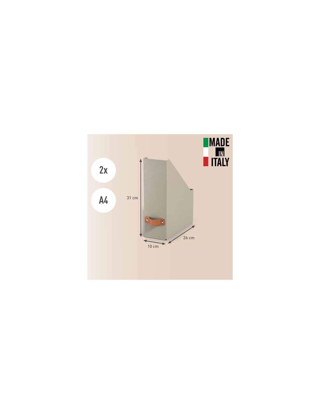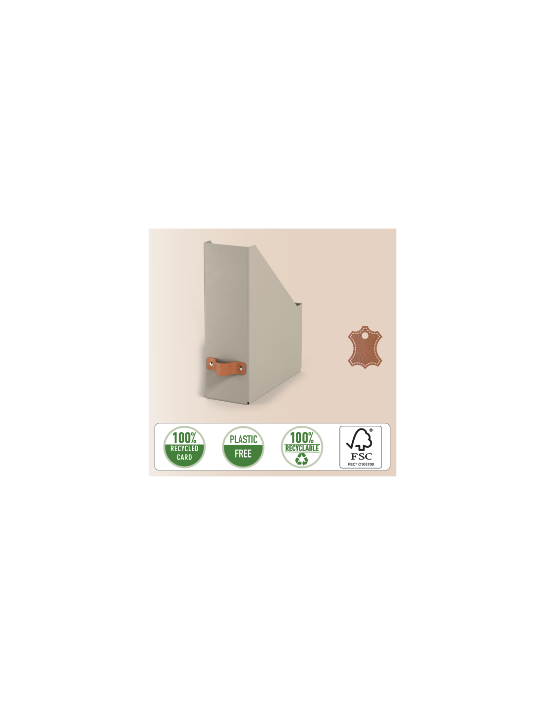 Leitz 24710012. Material de la carcasa: Cartón, Color del producto: Beige, Formato: A4. Ancho: 100 mm, Profundidad: 260 mm, Altura: 310 mm. País de origen: Italia. Certificados de sostenibilidad: Forest Stewardship Council (FSC)