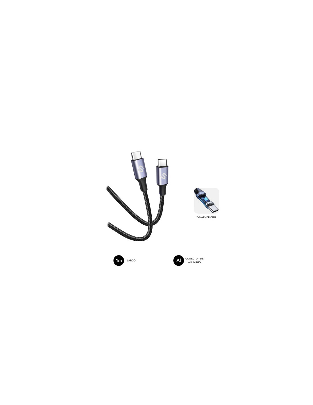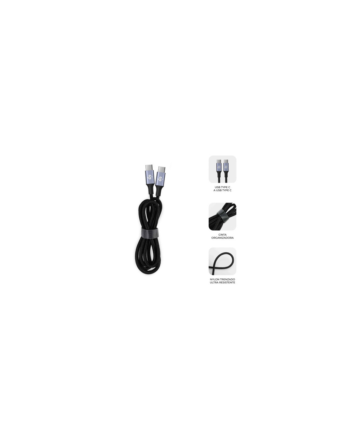 SUBBLIM CABLE PLUS 100W C-C 1m BLACK. Longitud de cable: 1 m. Conector 1: USB C, Conector 2: USB C, Versión USB: USB 2.0, Tasa de transferencia (máx): 0,48 Gbit/s, Color del producto: Negro