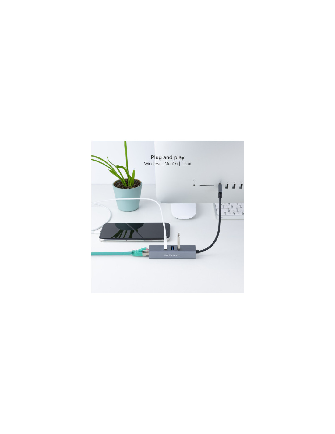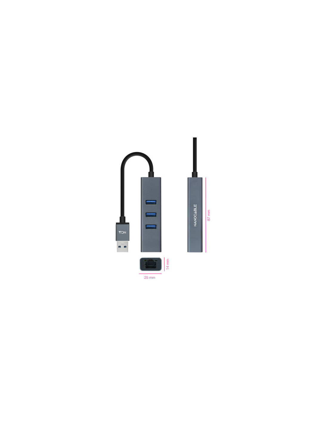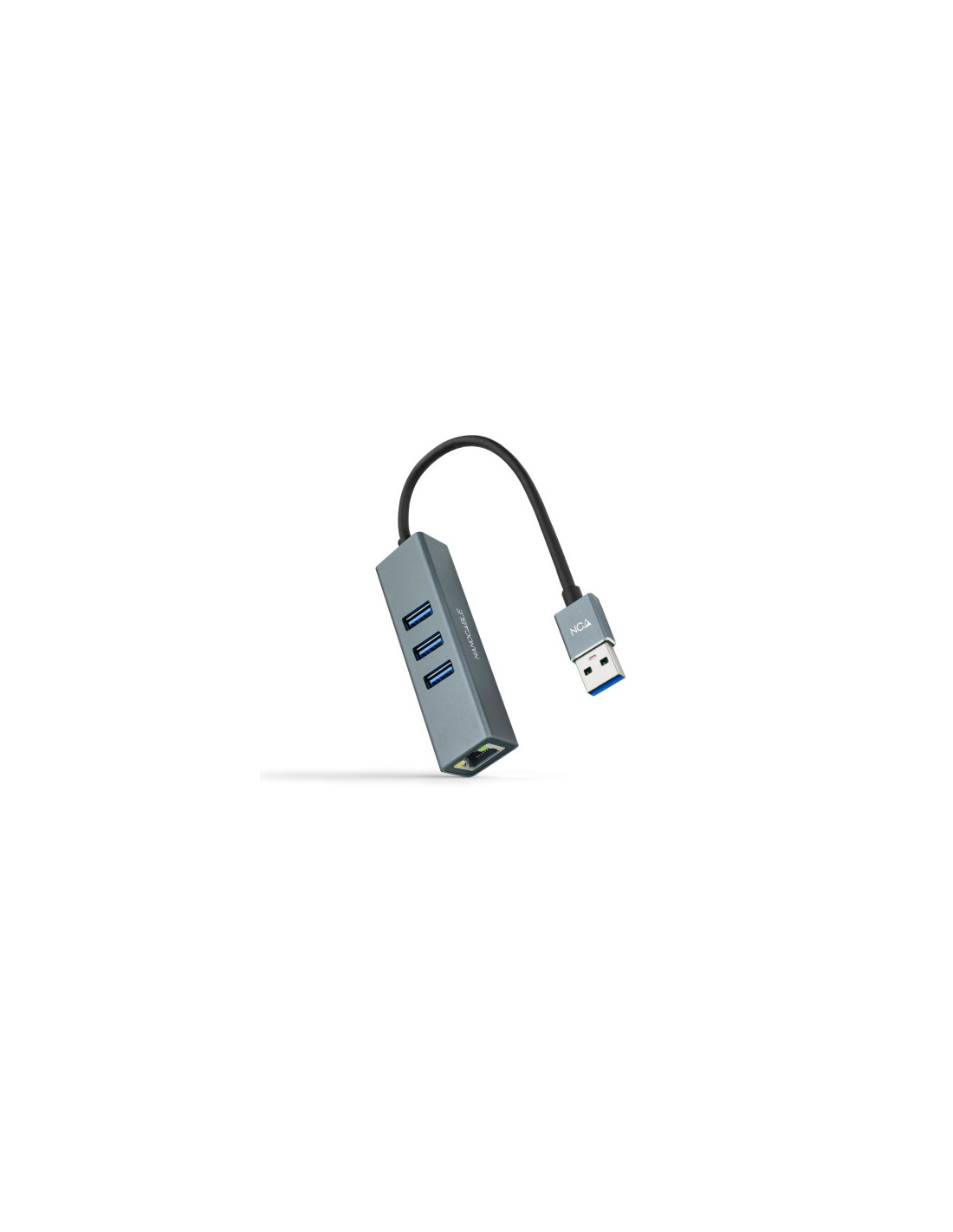 NANOCABLE CONVERSOR USB 3.0 A ETHERNET GIGABIT + 3XUSB 3.0, ALUMINIO, GRIS, 15 CM