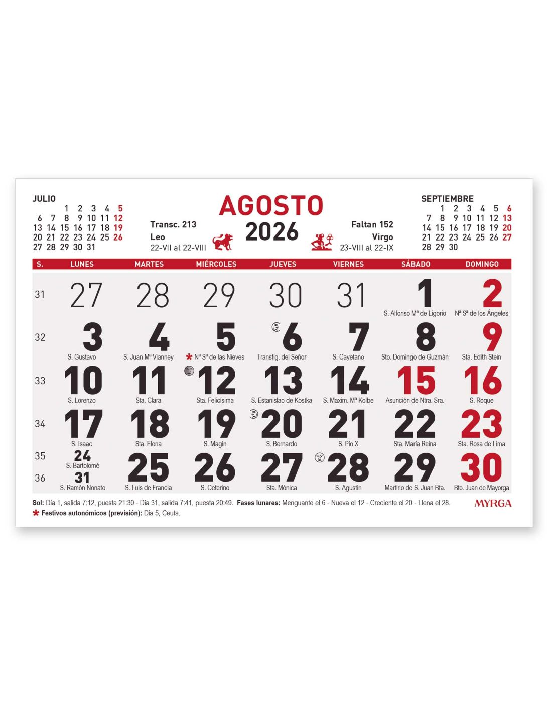 FALDILLA CALENDARIO MYRGA 10X15 REF 1591 2026