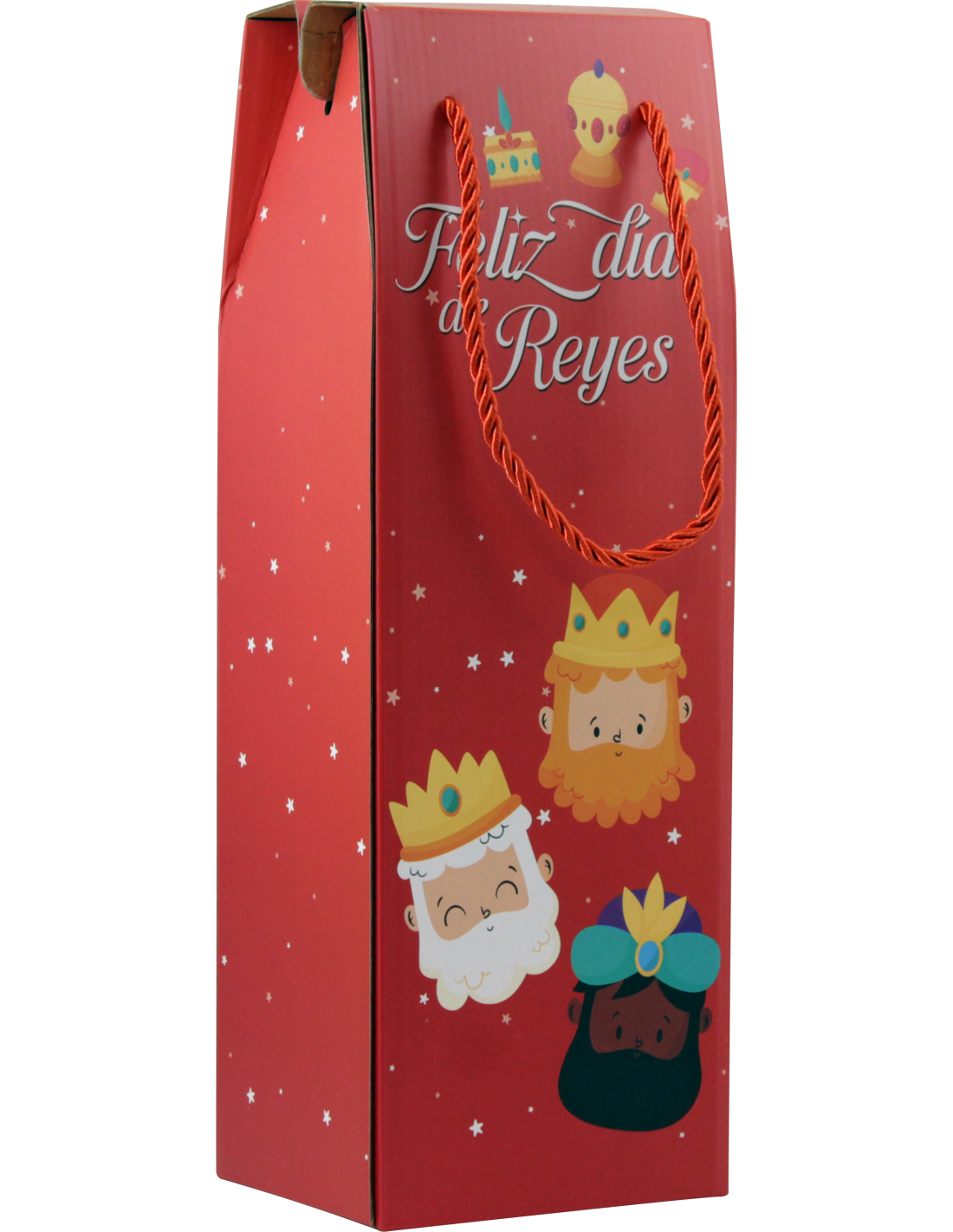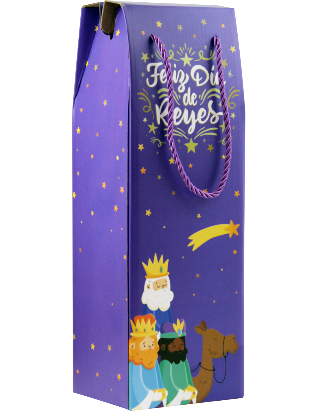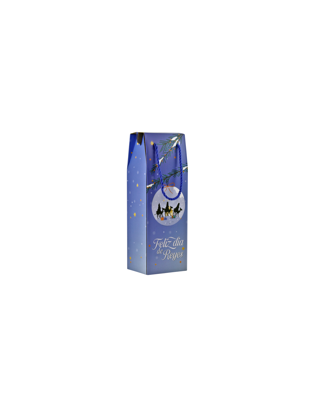 CAJA CON ASA MENSAJES EFECTO MADERA BOTELLERO REYES MAGOS (13X36X10 CM) COLORES SURTIDOS BISMARK 333603