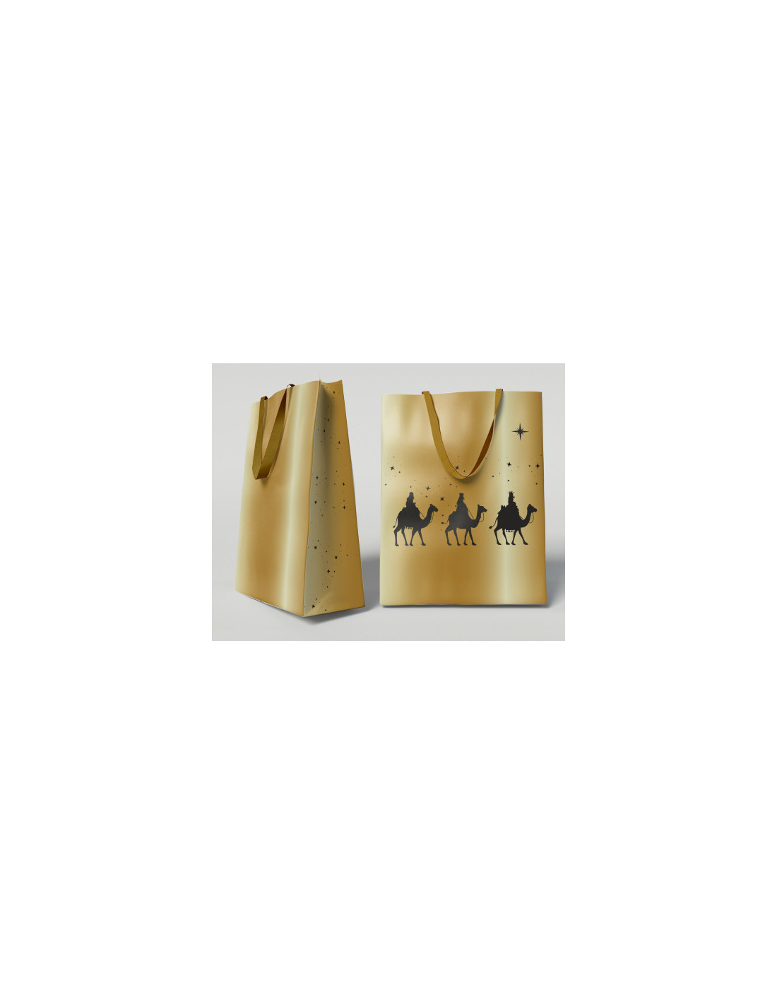 BOLSA DORADA PAPEL REYES MAGOS S (24X10X32 CM) CON TARJETA COLGANTE BISMARK 333673