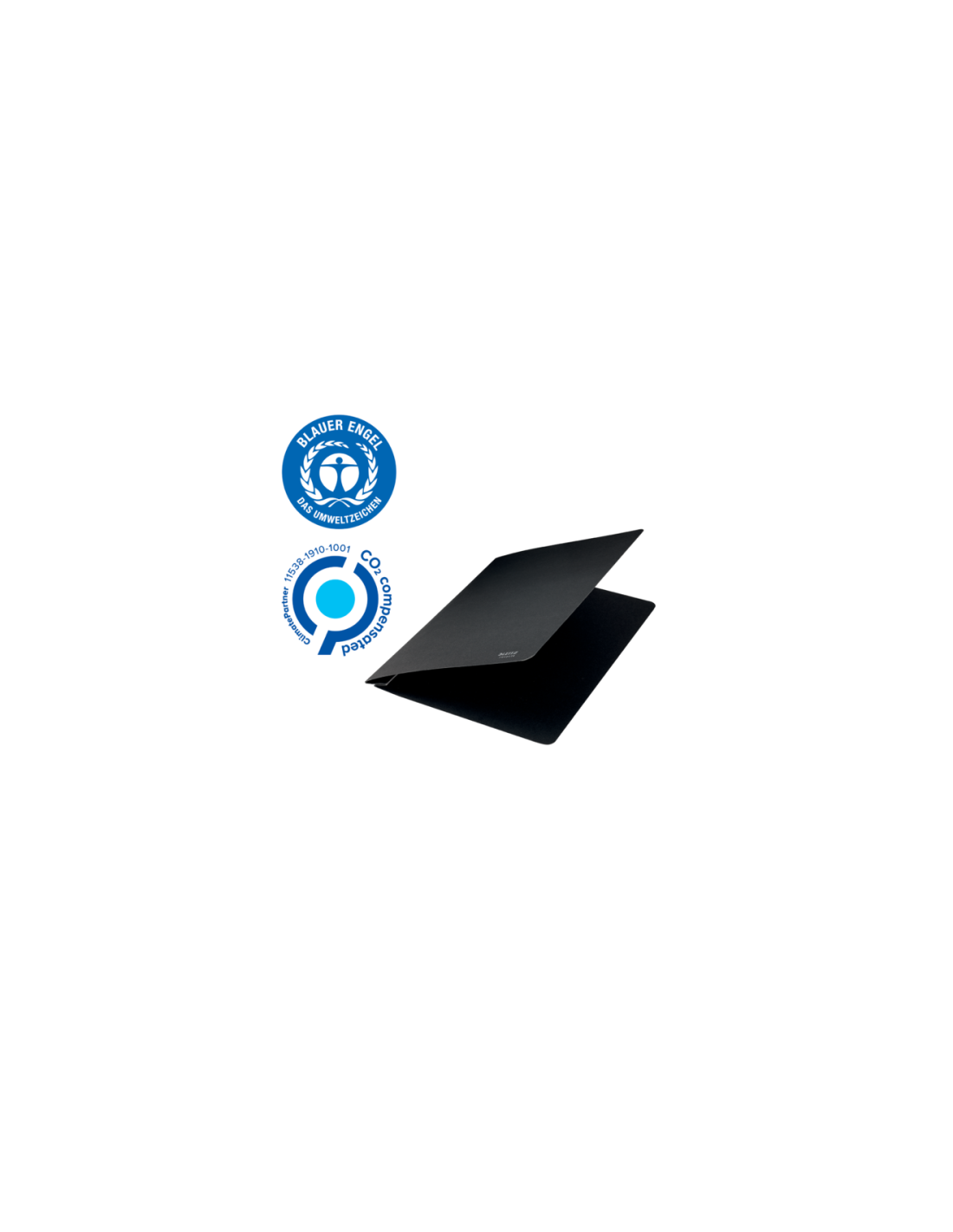 Dosier fástener de cartón de primera calidad para documentos. Clip plano de metal para facilitar la encuadernación de documentos perforados. Fabricado con cartón 100% reciclado, neutro para el clima gracias a la reducción y compensación de CO2, 100% reciclable y con certificación medioambiental Blue Angel. Formato A4. Color negro