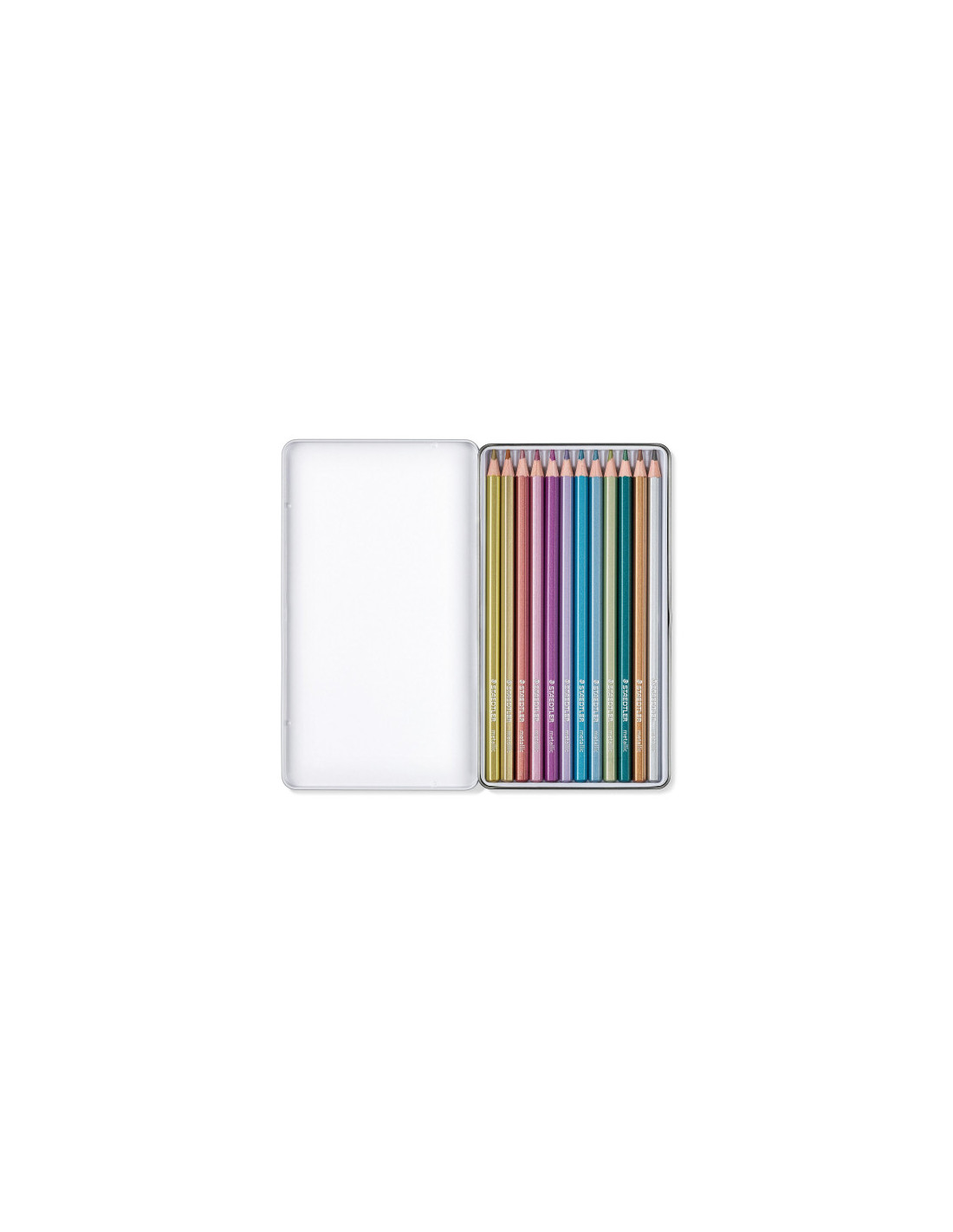 Staedtler Metallic. Cantidad por paquete: 12 pieza(s), Colores de escritura: Metálico, Multicolor. Tipo de embalaje: Caja metálica