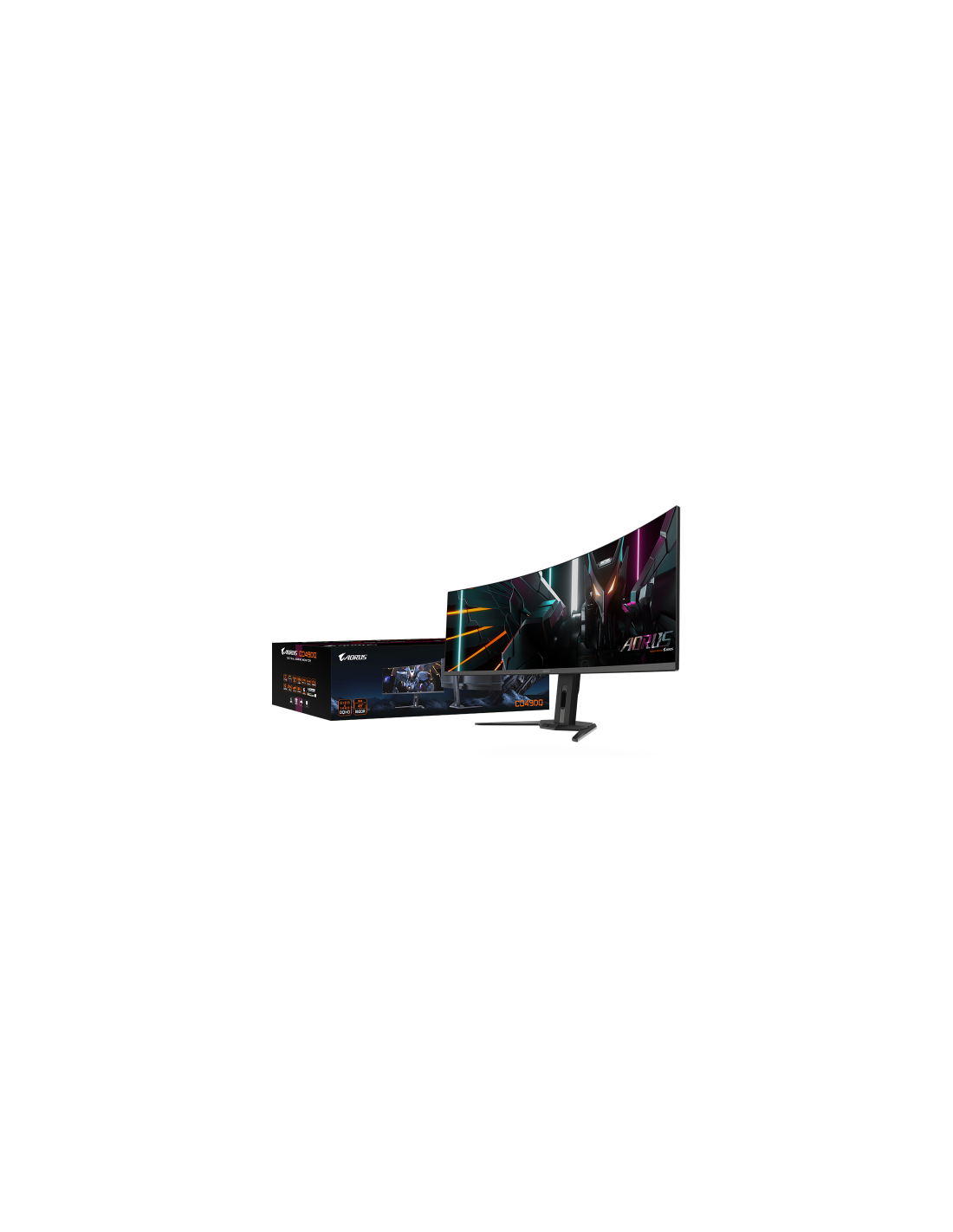 AORUS CO49DQ. Diagonal de la pantalla: 124,5 cm (49"), Resolución de la pantalla: 5120 x 1440 Pixeles, Tipo HD: DQHD, Tecnología de visualización: OLED, Tiempo de respuesta: 0,03 ms, Relación de aspecto nativa: 32:9, Ángulo de visión, horizontal: 178°, Ángulo de visión, vertical: 178°. Altavoces incorporados. Conector USB incorporado. montaje VESA, Ajustes de altura. Color del producto: Negro
