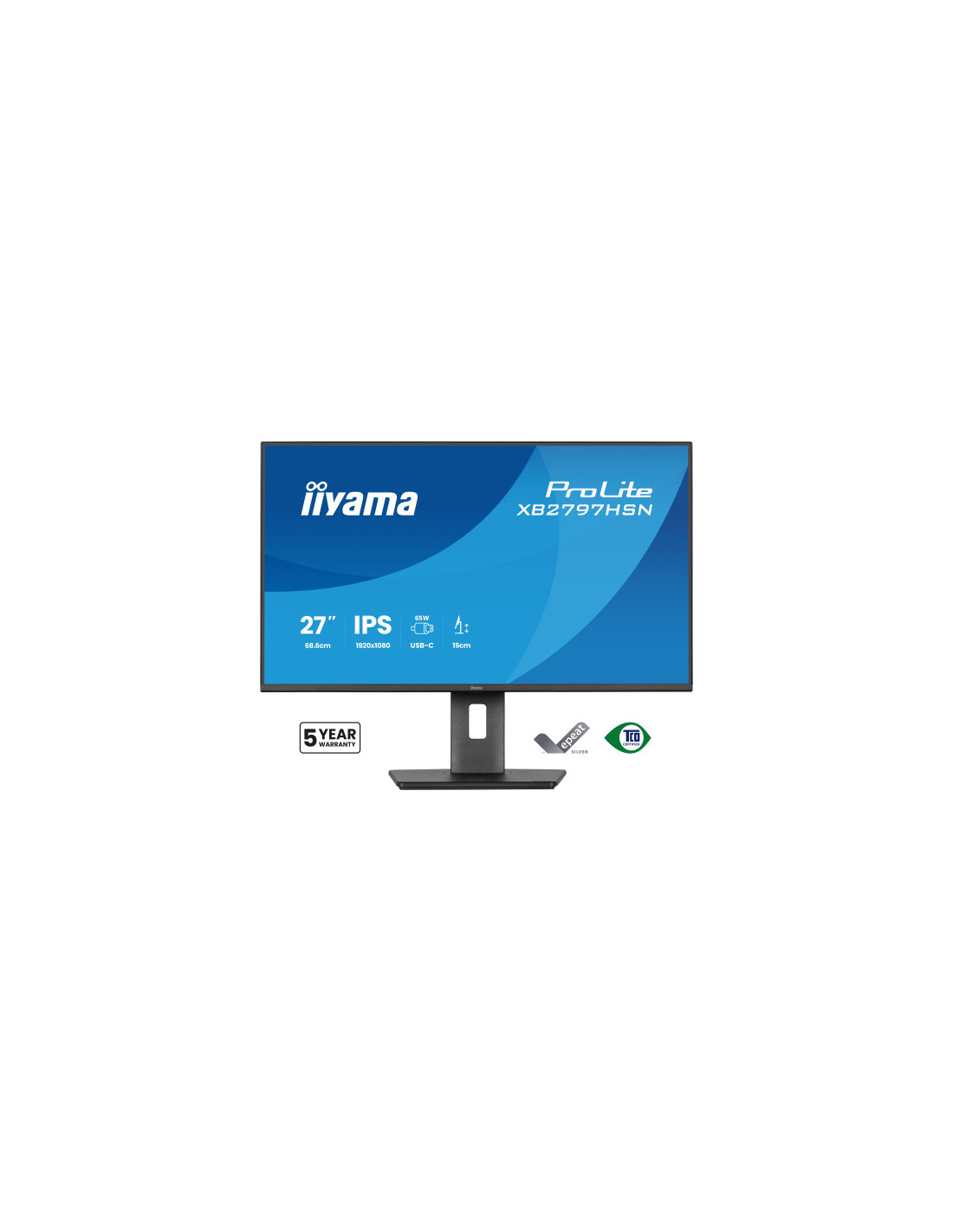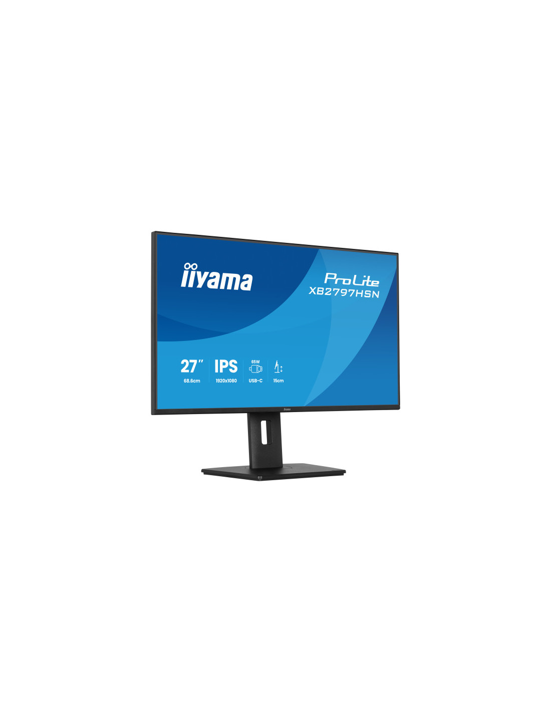iiyama ProLite XB2797HSN-B1. Diagonal de la pantalla: 68,6 cm (27"), Resolución de la pantalla: 1920 x 1080 Pixeles, Tipo HD: Full HD, Superficie de la pantalla: Mate, Relación de aspecto nativa: 16:9, Ángulo de visión, horizontal: 178°, Ángulo de visión, vertical: 178°. Altavoces incorporados. Conector USB incorporado, Versión de conector USB: 3.2 Gen 1 (3.1 Gen 1). montaje VESA, Ajustes de altura. Color del producto: Negro