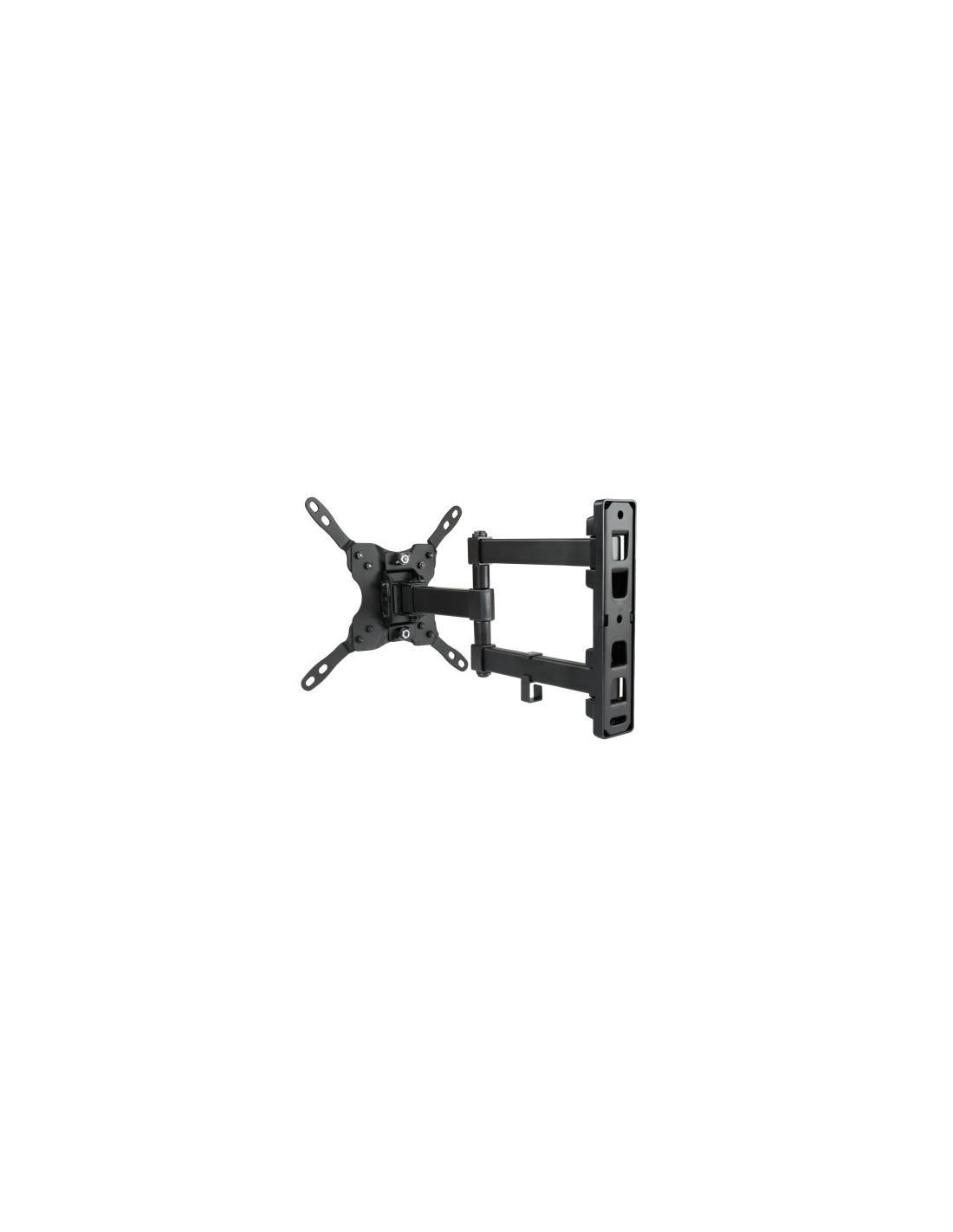 - Soporte metálico monitor/TV de 13" a 42"\n- Carga máxima: 20 kg\n- Angulo de giro: 180º\n- Angulo de inclinación: -12º ~ +5º\n- Angulo de nivelación: -3º ~ +3º\n- Distancia de la pared: 60mm – 360mm\n- Incluye gancho recoge cables\n\nCaracterísticas