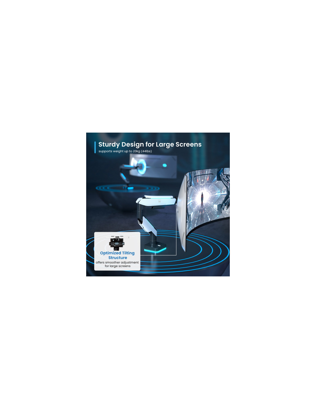 O design sofisticado e a iluminação ambiente cativante, aprimorada por 7 efeitos de iluminação dinâmicos, transformam o suporte em um elemento decorativo que se integra perfeitamente em qualquer ambiente. Uma fusão de estilo e funcionalidade avançada que complementa perfeitamente os espaços de trabalho modernos ou as áreas de entretenimento.