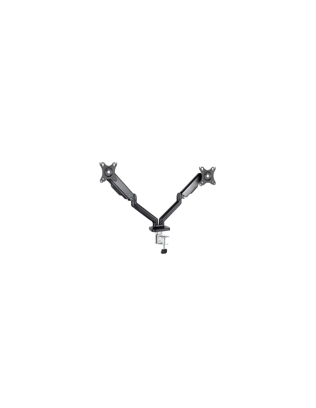 ¡Doble o nada! Nuestro soporte perfecto para tus dos pantallas. Ideal para gamers o para trabajar más cómodamente. Cuenta con sistema de organización de cables y además es compatible con pantallas curvas.