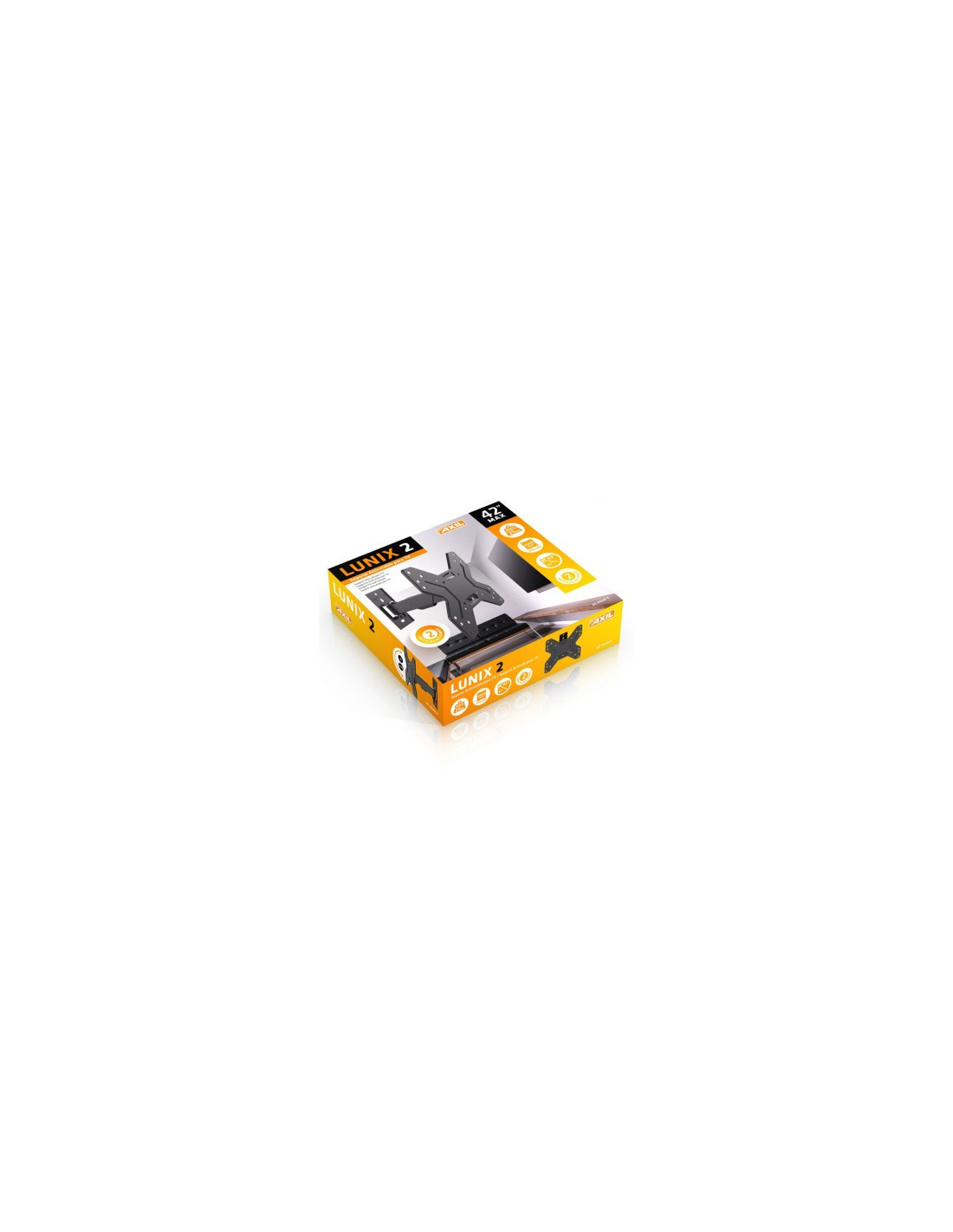 Dos articulaciones (ejes de 180º) y el brazo extensible (hasta 194 mm) facilitan la orientación del televisor. Inclinable (desde -5º hasta +15º)