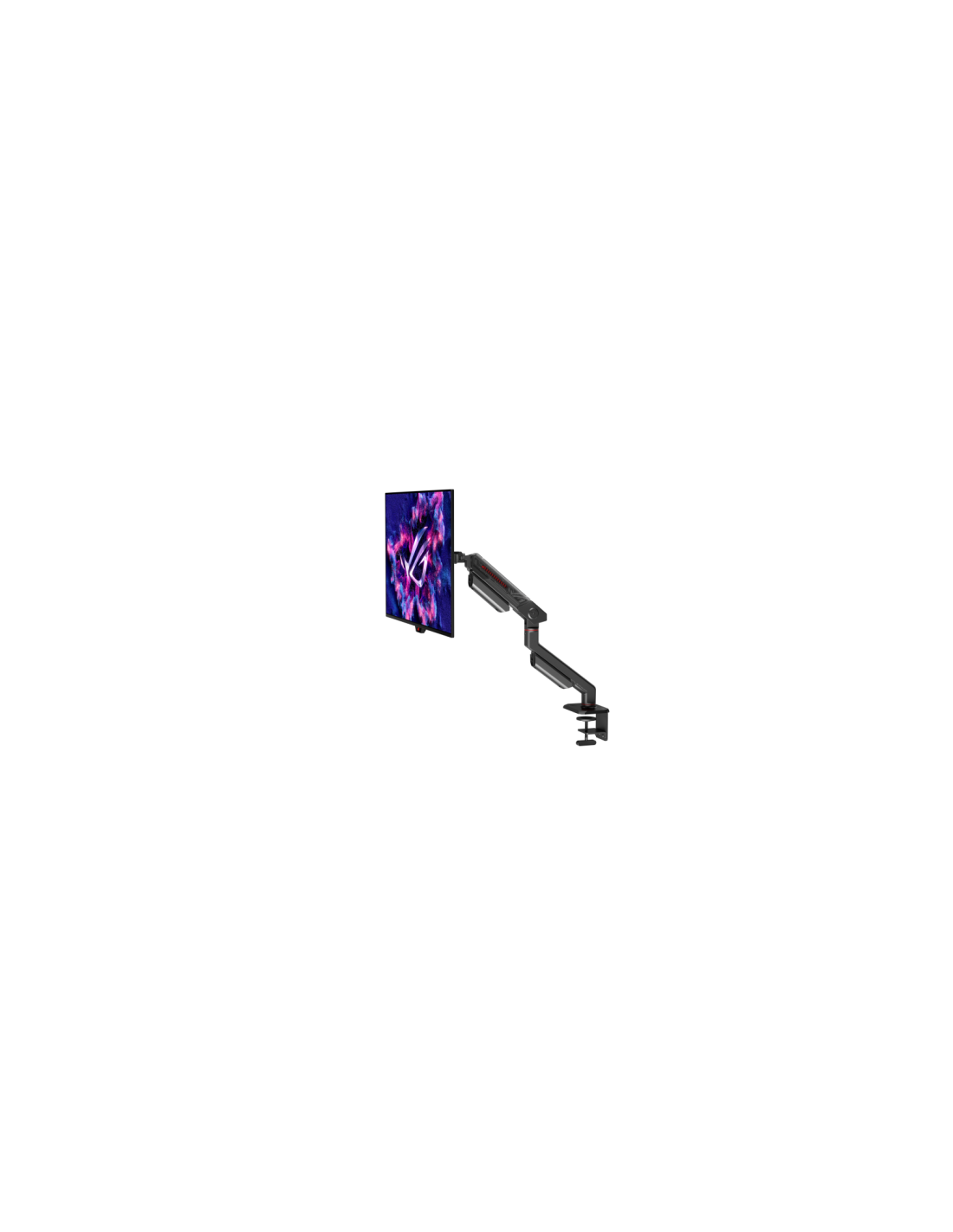 ASUS AAS01 – ROG Ergo Arm. Montaje: Abrazadera, Capacidad máxima de peso: 11,5 kg, Tamaño máximo de pantalla: 86,4 cm (34"), Compatibilidad con interfaz de montaje (min): 100 x 100 mm, Compatibilidad con interfaz de montaje (max): 100 x 100 mm. Ajustes de altura, Ángulo de giro (alcance): -90 - 90°, Ángulo de inclinación: -25 - 80°. Color del producto: Negro