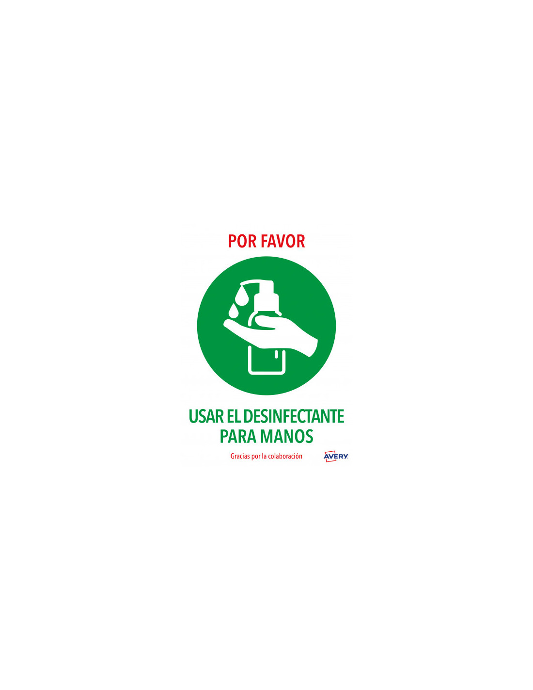 SEÑALES ADHESIVOS PREIMPRESO "USAR DESINFECTANTE PARA LAS MANOS" SOBRE DE 2 HOJAS EN A4 AVERY AV_KITCOVID3_ES