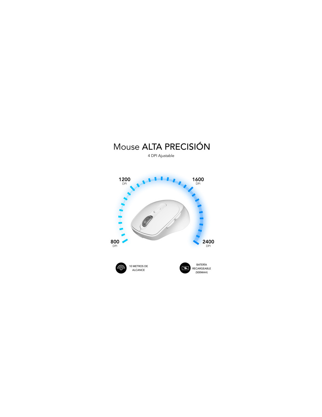 Descubre nuestro ratón ergonómico Comfort Ergo Dual diseñado para ofrecerte comodidad y rendimiento óptimos. Con una superficie ergonómica para el pulgar que reduce la fatiga y previene lesiones, este ratón es perfecto para usuarios diestros, se adapta cómodamente a manos de tamaño mediano y grande. Con laterales revestidos de goma en un diseño moderno, garantiza un agarre seguro y confortable durante horas de uso. Conexión Bluetooth o por radiofrecuencia seleccionable, permite conectar hasta 3 dispositivos para una mayor versatilidad. Su sensor de alta precisión con resolución de hasta 2400 dpi garantiza un seguimiento suave y preciso en cualquier superficie. Además, con la batería recargable disfrutarás de una autonomía prolongada incluso en un uso intensivo. Compatible con una amplia gama de dispositivos, cuenta con 6 botones y tecnología Silent Click para una pulsación silenciosa