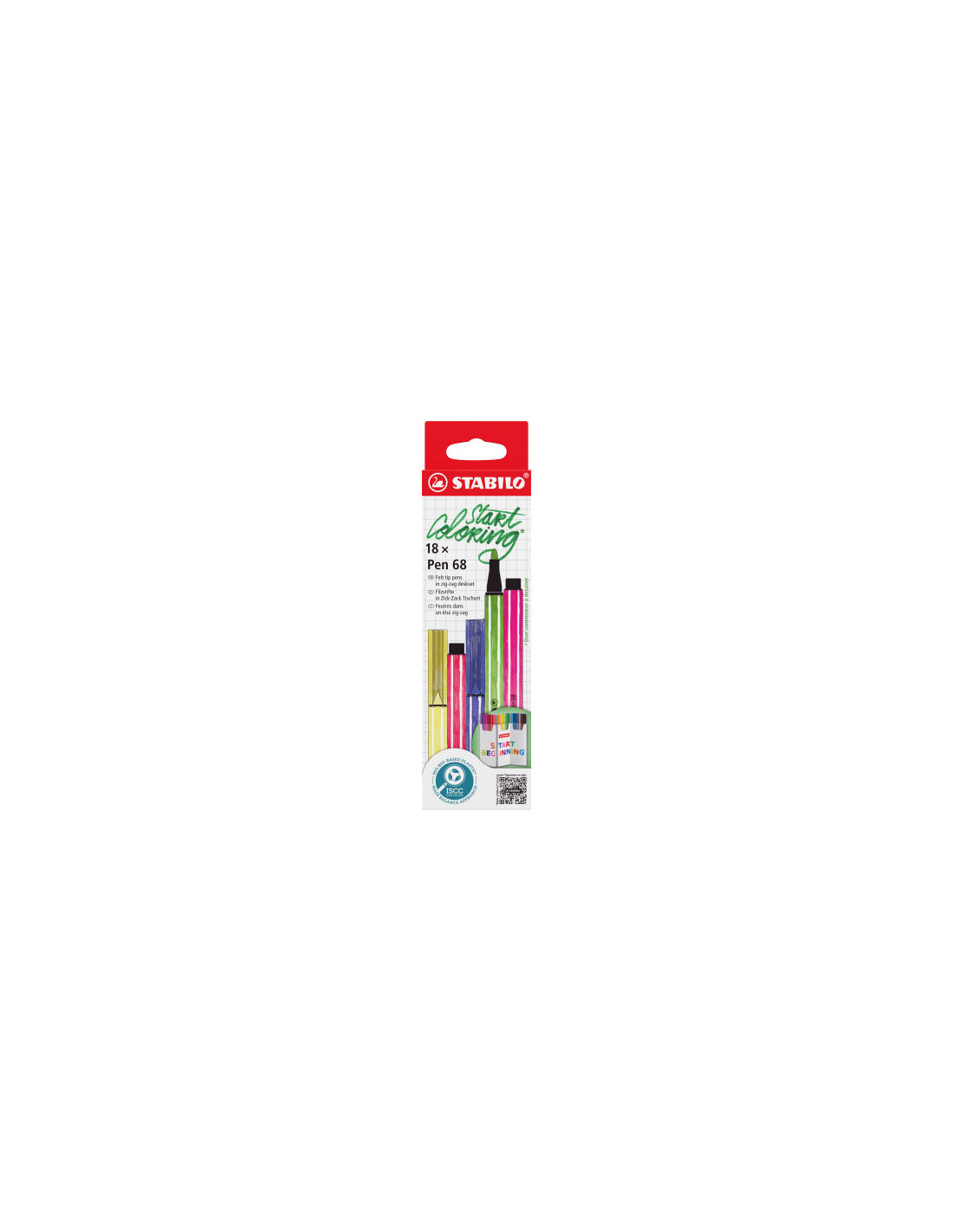 ESTUCHE CARTON ZIG-ZAG ROTULADORES PUNTA FIBRA MEDIA 1MM. PEN 68 CON 18 UNIDADES COLORES SURTIDOS STABILO 6818-8