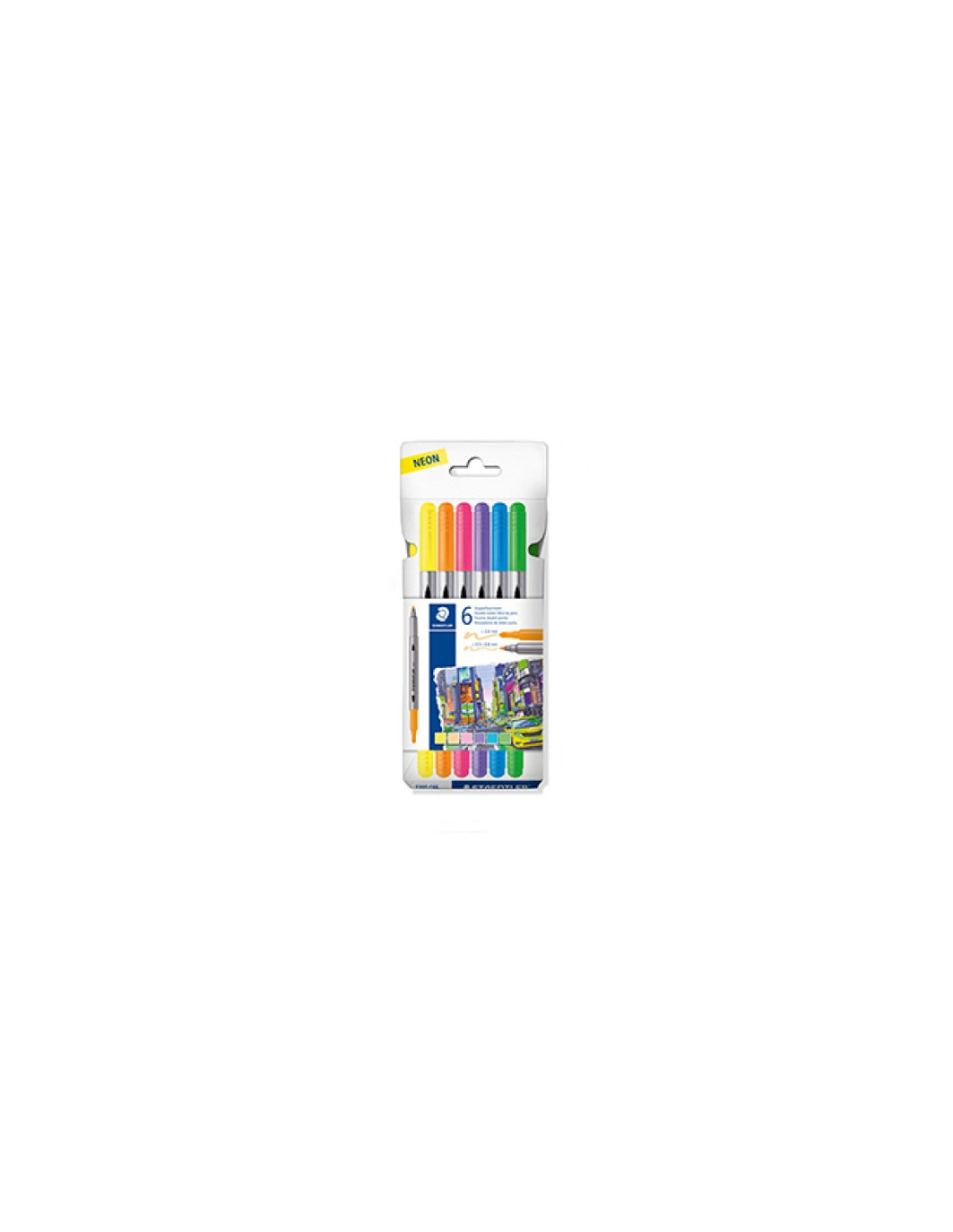 ESTUCHE CARTÓN CON 6 ROTULADORES DOBLE PUNTA COLORES NEÓN STAEDTLER 3200 C6F