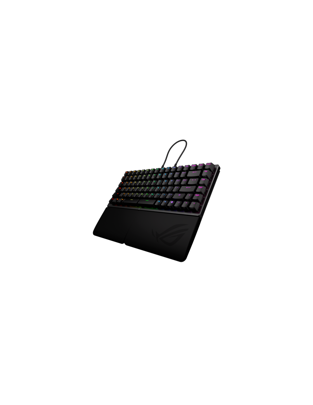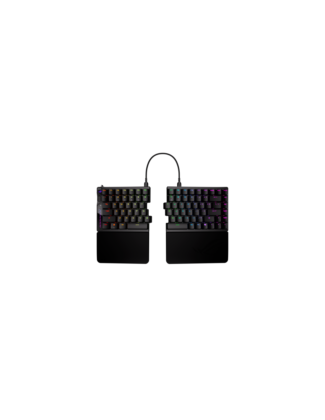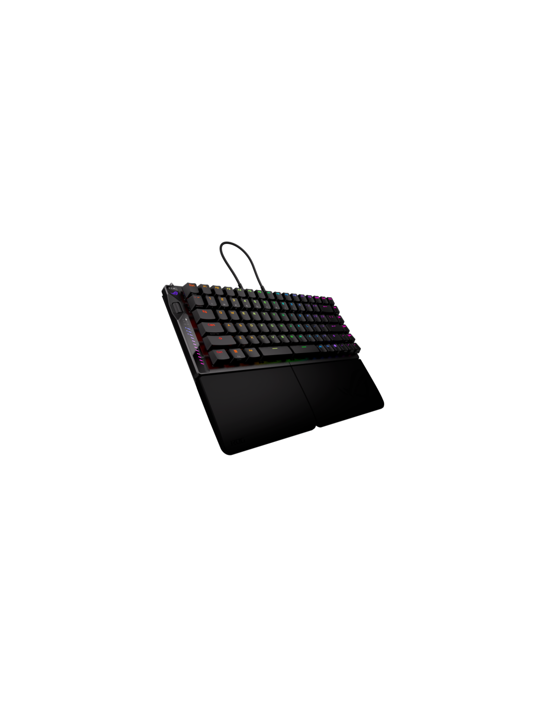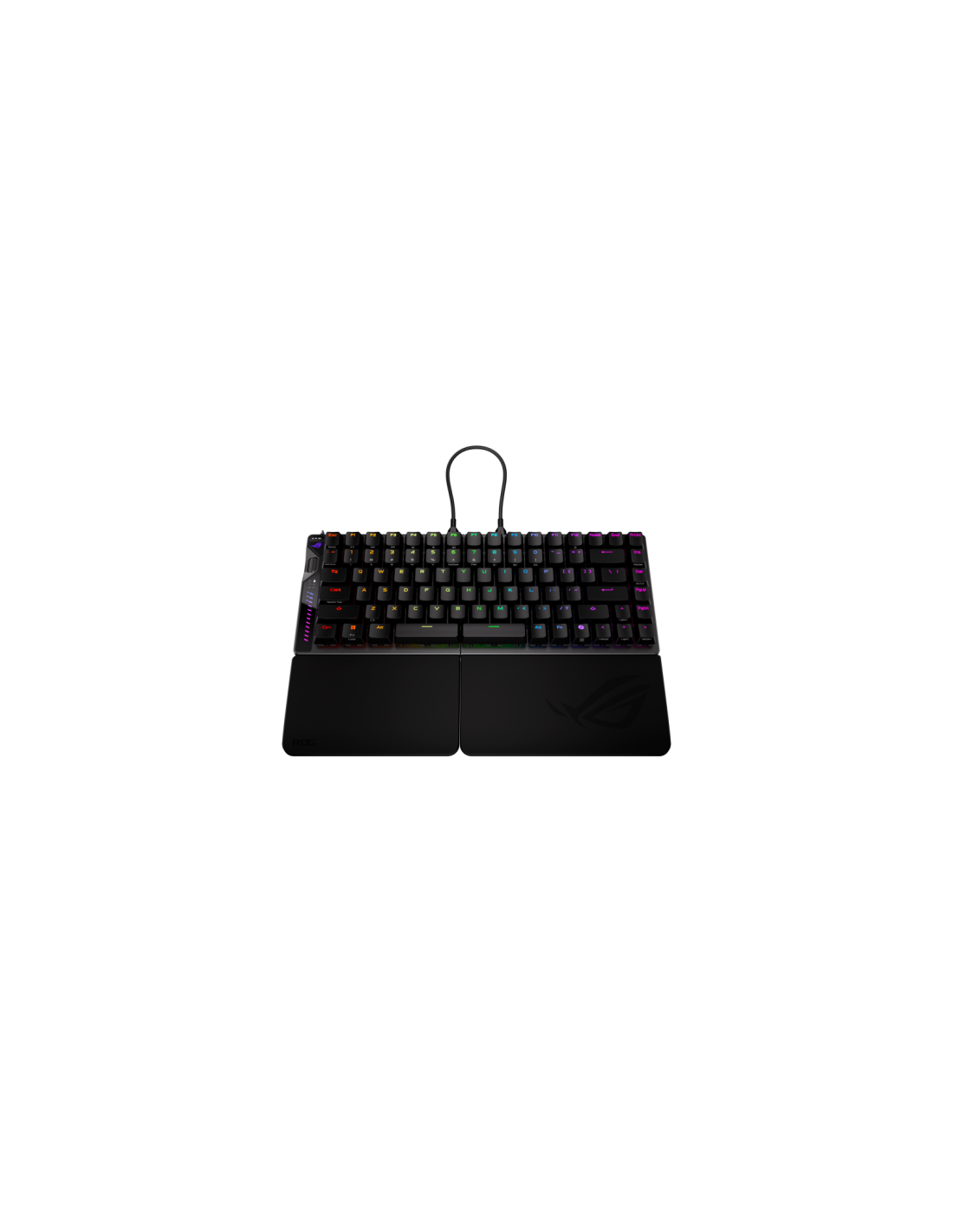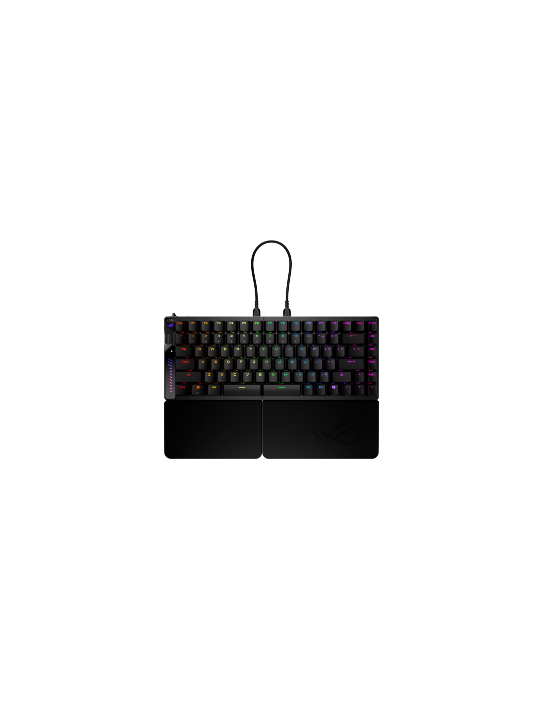 ASUS ROG Falcata. Formato del teclado: 75%. Estilo de teclado: Derecho. Tecnología de conectividad: Inalámbrico y alámbrico, Interfaz del dispositivo: USB + RF Wireless + Bluetooth, Interruptor del teclado: Magnetic-mechanical key switch. Tipo de retroiluminación: LED RGB, Descansa muñecas. Uso recomendado: Juego. Color del producto: Negro