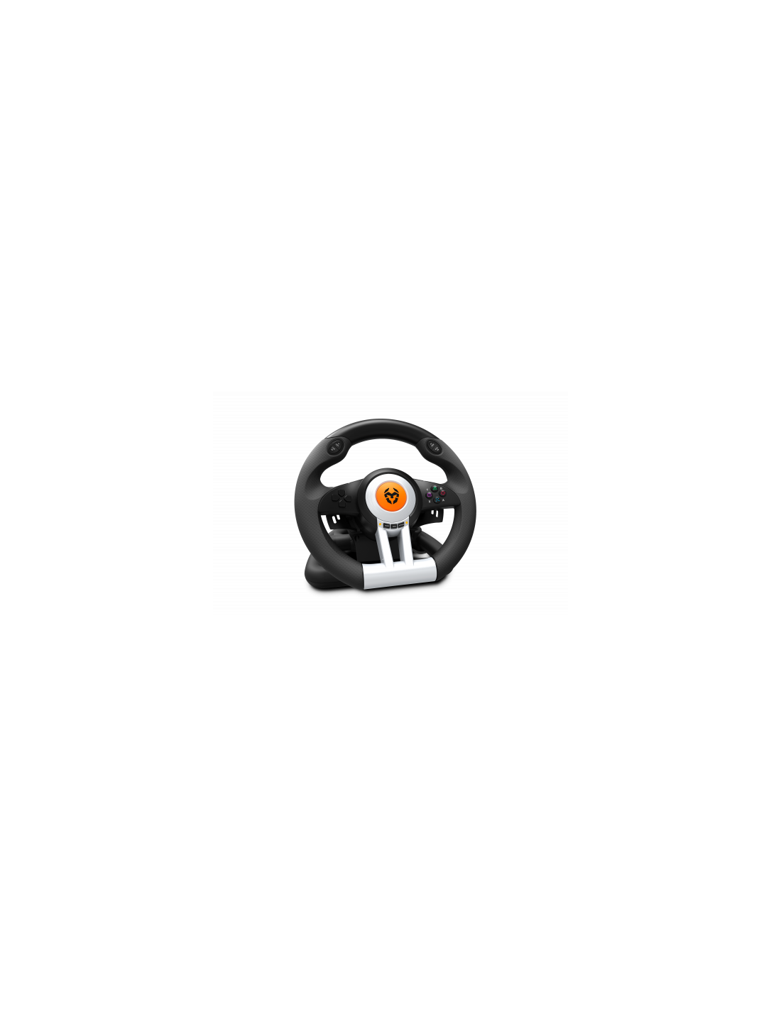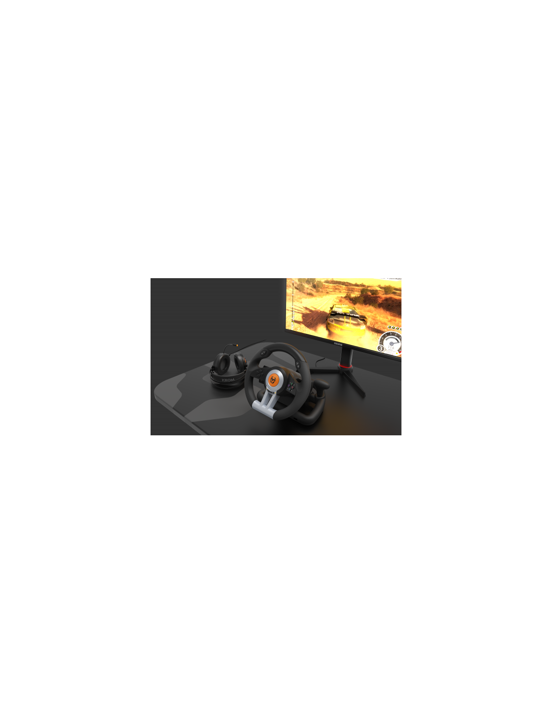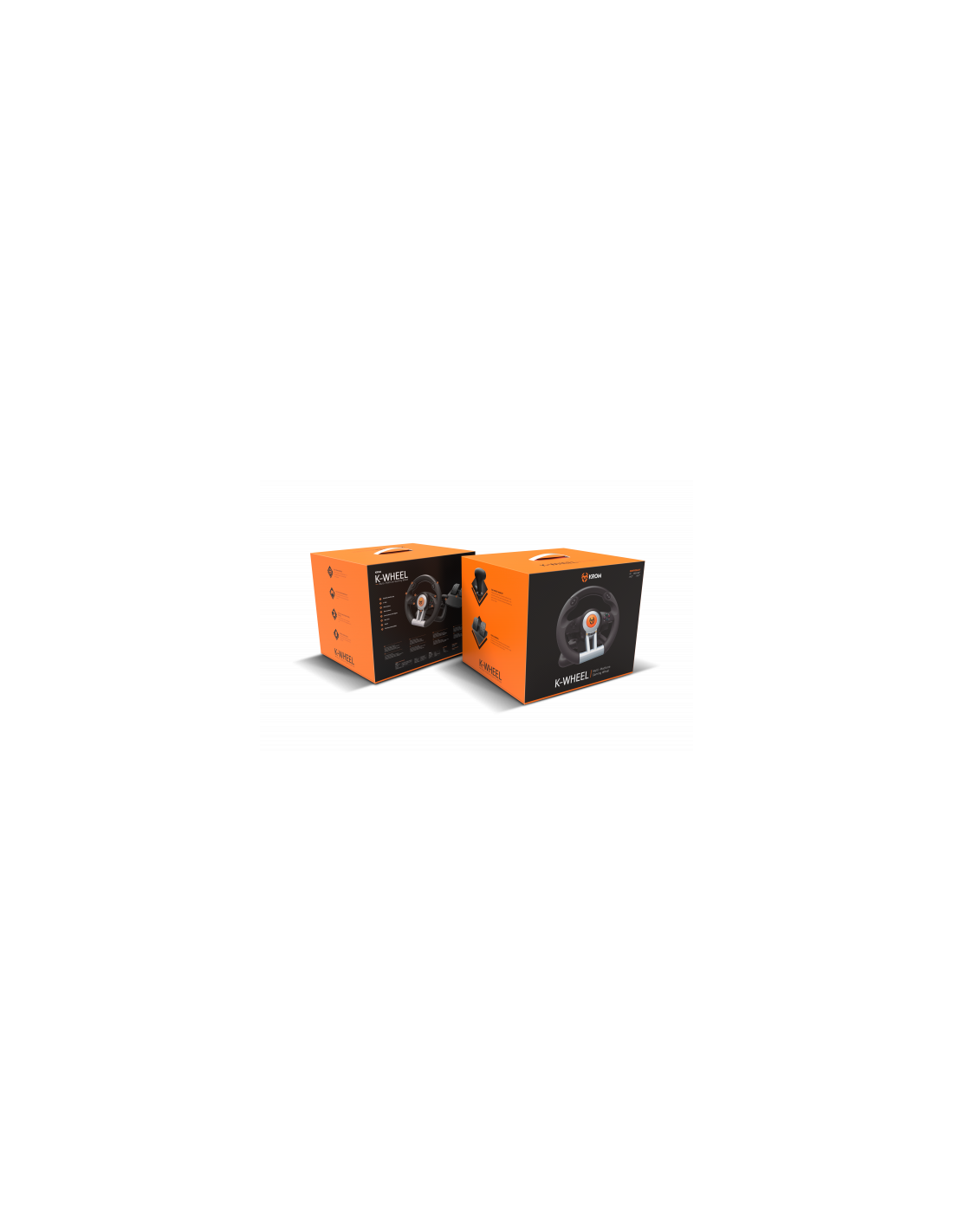 El Krom K-Wheel es un juego de volante de competición y pedales optimizado para todo tipo de juego de carreras que llega a Krom para ofrecerte máxima seguridad y control incluso en las maniobras más extremas. Experimenta la adrenalina de los pilotos de carreras desde tu pantalla gracias a este equipo completo de conducción.\n\nApodérate del camino\nEl volante, de 33 cm de diámetro, está inspirado en los deportes de motor que te garantiza una comodidad excelente durante largas partidas gracias a su diseño ergonómico.\n\nPosee un ángulo de rotación de 180º que te permitirá realizar giros increíbles y experimentar una verdadera sensación de conducción de manera agradable, gracias a su grip de tejido sintético que te ofrece un mejor agarre y a sus efectos de vibración que dotan de realidad tu experiencia sobre el asfalto.\n\nPreparado para la competición\nEl Krom K-Wheel incluye un sistema de marchas secuenciales a través de su palanca de cambios y levas situadas en el mismo volante, lo que te brinda una mayor agilidad en los giros y una inmediatez en el cambio de marcha sin que tengas que soltar en ningún momento el timón de tu vehículo.\n\nDispone de 12 botones (8 analógicos y 4 digitales) con los que podrás seleccionar diferentes opciones, entre ellas, el modo X-Input y D-Input.\n\nAdemás, K-Wheel incluye pedales de aceleración y freno con un ángulo y recorrido inspirado en los estándares automovilísticos para que tu experiencia de conducción la sientas como si estuvieras en el mismo circuito\n\nConéctalo y conduce seguro. \nEl K-Wheel posee una estructura resistente con un sistema de sujeción central con 7 potentes ventosas que te ofrecen una estabilidad óptima en escritorios y todo tipo de mesas, así que solo tienes que enchufar tu K-Wheel en tu PC, PS3, PS4 o XBOX One y disfrutar de una conducción sin límites. Siente la retroalimentación y no pierdas la pista.