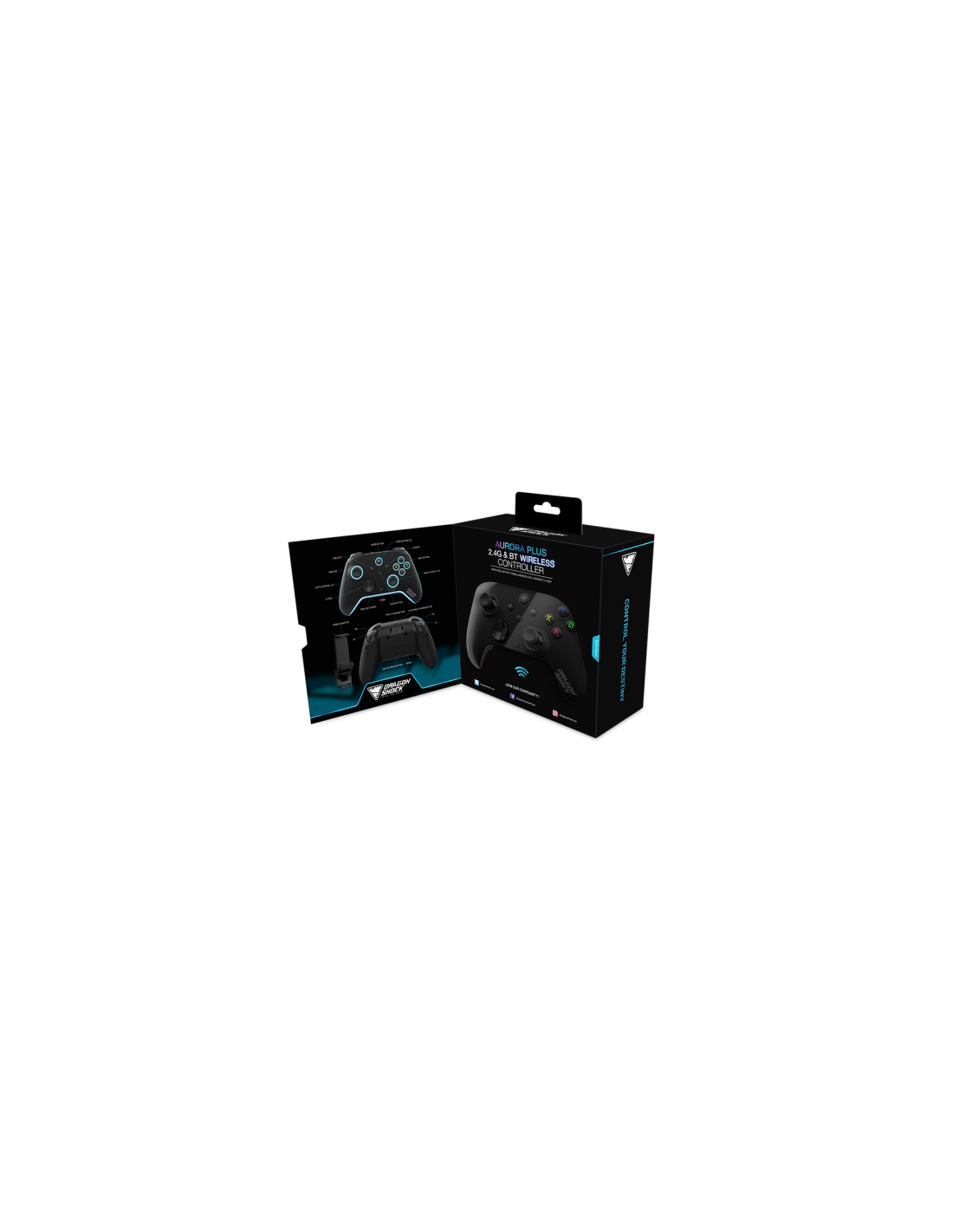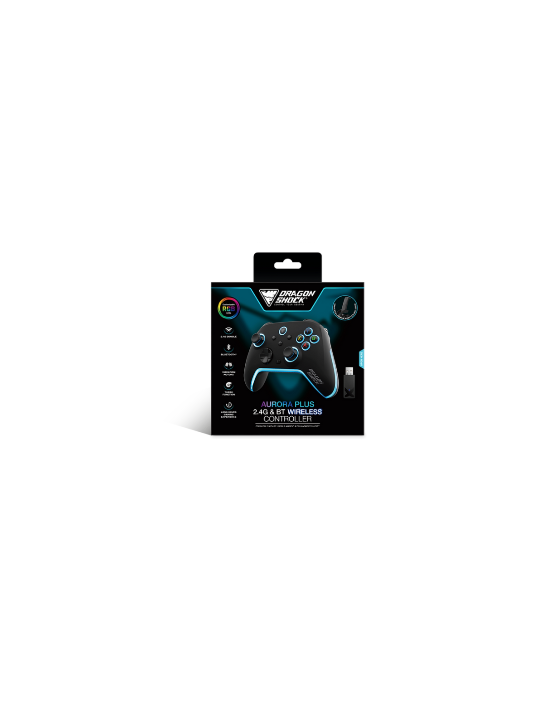 DRAGONSHOCK - AURORA PLUS - MANDO INALÁMBRICO NEGRO CON ADAPTADOR MÓVIL PARA PC, ANDROID E IOS